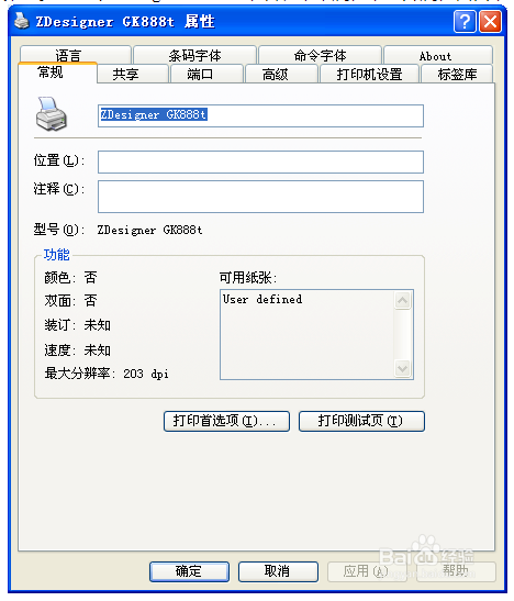 第二步:選中ZDesigner GK888t,右鍵菜單屬性,打開屬性窗口;